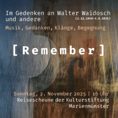Gedenkkonzert für verstorbene Wegbegleiter, u. a. für Walter Waidosch. Der Musiker und Geigenbauer war langjähriger Leiter der Burg Sternberg, regelmäßiger Gast in Marienmünster und Impuls- und Ideengeber in der Region. Es gibt Zeit zum Zu- und...
